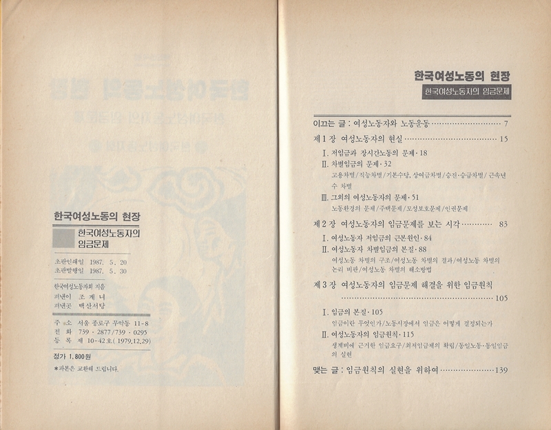 [단행본] 1987년 '한국여성노동의 현장 : 한국여성노동자의 임금문제