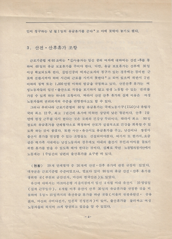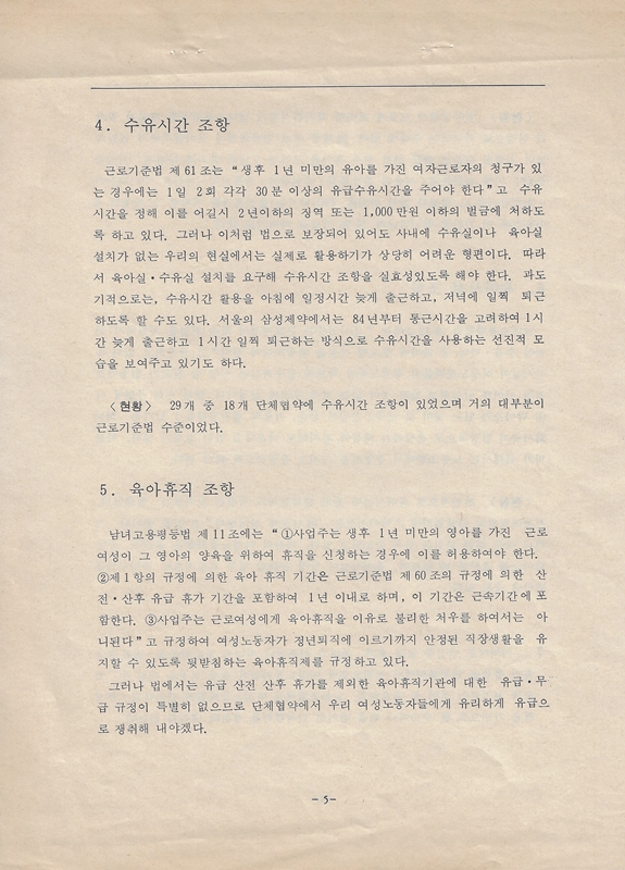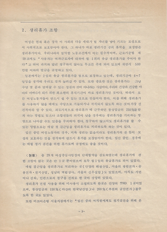 [문서]1989년 여성의 평생노동권을 보장하는 단체협약 조항들!!