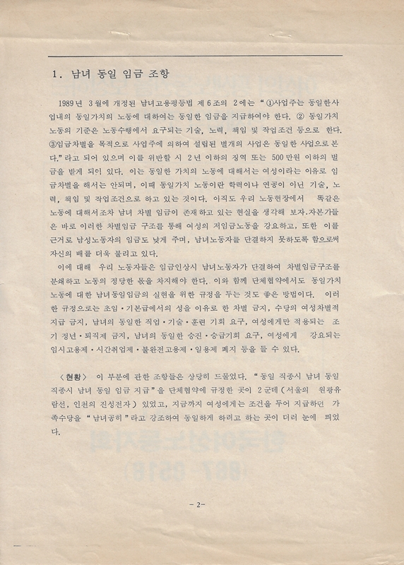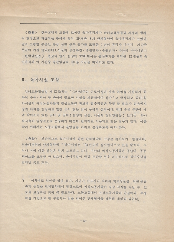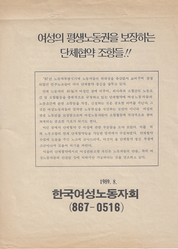 [문서 자료] 1989년 '여성의 평생노동권을 보장하는 단체협약 조항들!!'