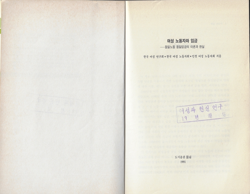 [단행본] 1991년 '여성노동자와 임금 : 동일노동 동일임금이 이론과 현실'
