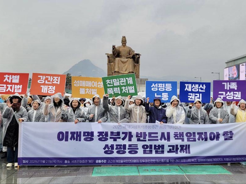 국제 기준 역시 이미 ‘동의 없는 성관계는 강간’이라는 원칙에 서 있습니다. UN 여성차별철폐위원회, 인권이사회, 고문방지위원회는 지속적으로 한국 정부에 동의 부재를 기준으로 강간죄를 개정하라고 권고해 왔습니다. 영국, 독일, 스웨덴, 스페인, 미국, 일본 등 다수의 국가는 이미 “자유롭고 자발적인 동의”를 강간의 핵심 구성요건으로 명문화하며 시대의 방향을 바꾸고 있습니다. 한국은 여전히 이 흐름에서 뒤처지고 있습니다. 2025년, 한국사회는 민주주의를 다시 세우는 시기를 지나고 있습니다. 하지만 성평등 없는 민주주의는 불가능합니다. 이제 이재명 정부가 해결해야 합니다. 성폭력이 발생하는 현장에서 더 이상 피해자에게 “맞으라, 저항하라, 증명하라”라고 말하는 국가가 되어서는 안 됩니다. 동의 중심 강간죄는 법이 현실을 반영하는 과정이며, 피해자 중심 정의를 실현하기 위한 출발점입니다. 우리는 성별, 연령, 장애 여부, 국적과 상관없이 모든 시민이 성적 존엄성과 안전, 자기결정권을 보장받는 사회를요구합니다. 강간죄 개정, 이제 국회와 정부가 응답해야 합니다. 감사합니다.