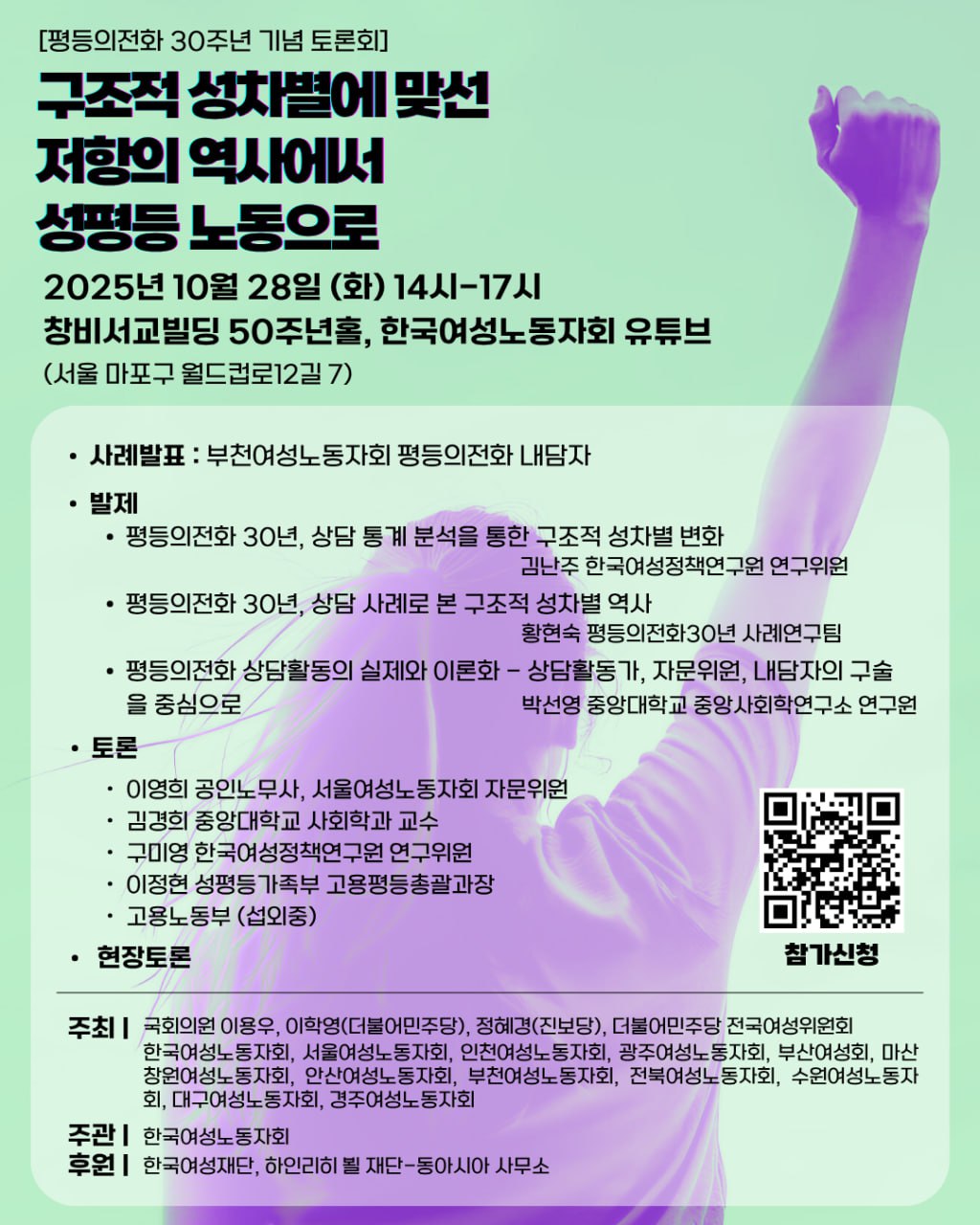 [평등의전화 30주년 기념 토론회] 구조적 성차별에 맞선 저항의 역사에서 성평등 노동으로