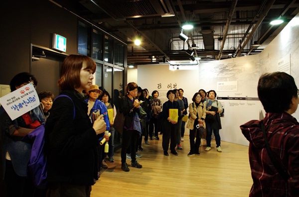 ▲ 전태일기념관에서 청계피복노조 이숙희 선생님의 말씀을 경청 중인 참가자들 ⓒ 서울여성노동자회