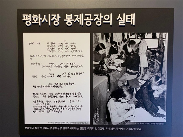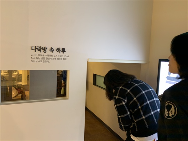 전시관에 마련된 당시 여성노동자들의 작업공간 '다락방'을 눈으로 확인했다. 허리 한 번 제대로 펼 수 없고 기지개는 엄두도 못 낼 그런 공간이었다. 어린 여성노동자들은 이런 곳에서 하루의 대부분을 보냈다.